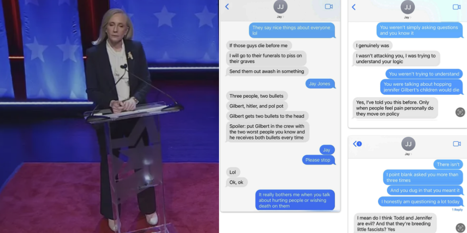 The controversy stems from a series of 2022 text messages Jones sent to Republican Delegate Carrie Coyner about then–House Speaker Todd Gilbert. Jones wrote: “Three people, two bullets, Gilbert, Hitler, and Pol Pot. Gilbert gets two bullets to the head.”